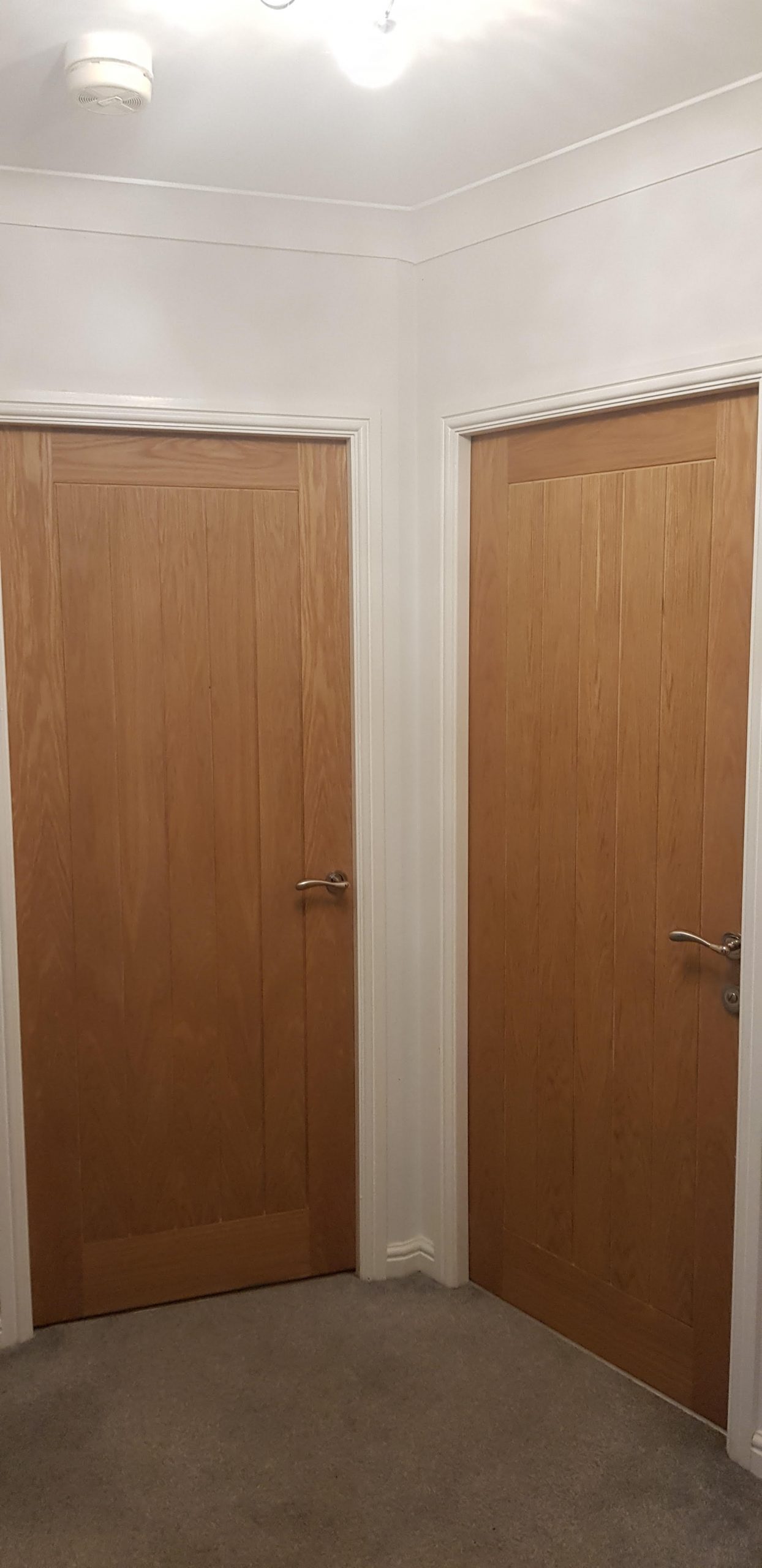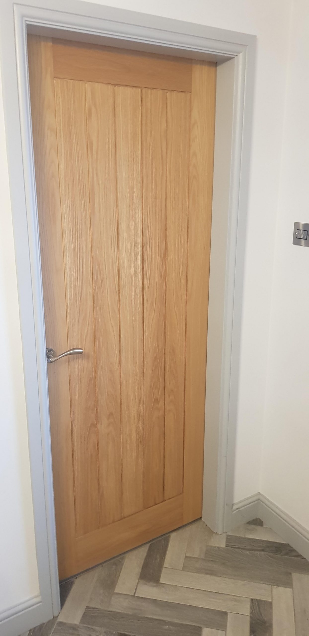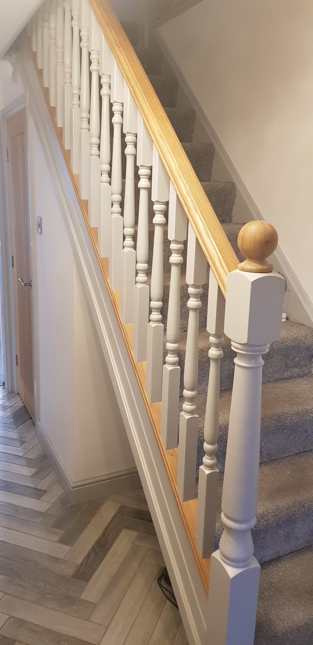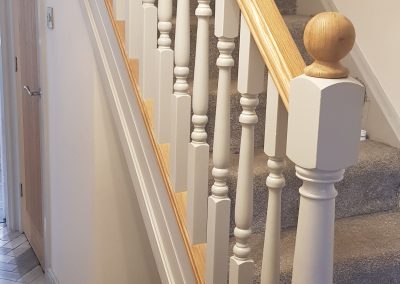 Client had recently purchased this property and had a number of internal joinery jobs that included hanging and fitting new oak doors, replacing the staircase spindles and adding a oak top. See images below of the work being carried out: